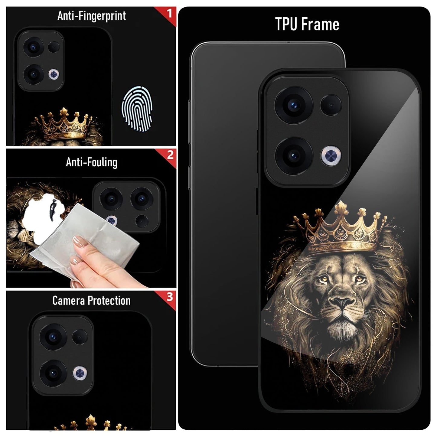 Oppo Reno 13 5G Premium Acrylic Shockproof Glass Back Case (Crowned lion)