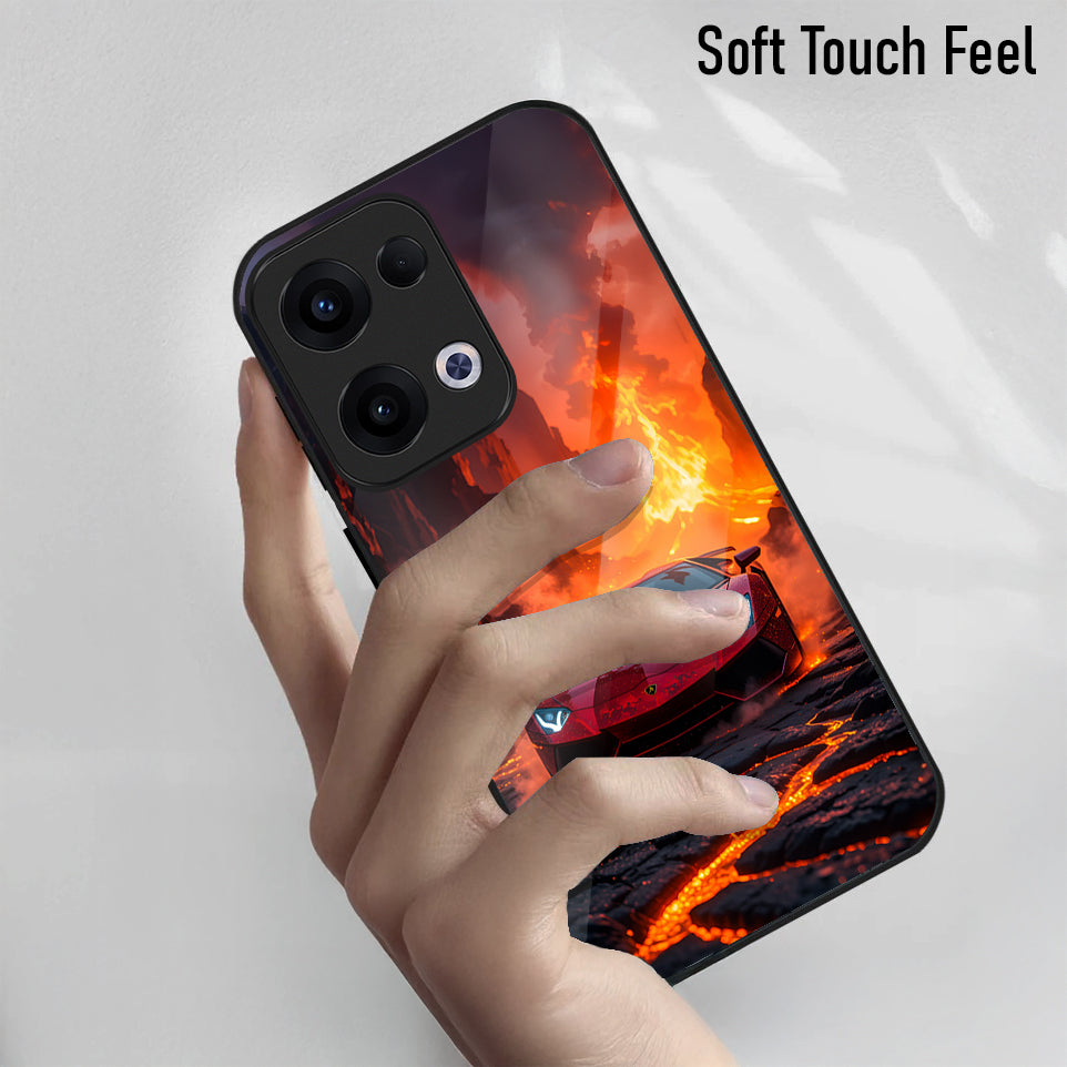 Oppo Reno 13 5G Premium Acrylic Shockproof Glass Back Case (Lamborghini Red)