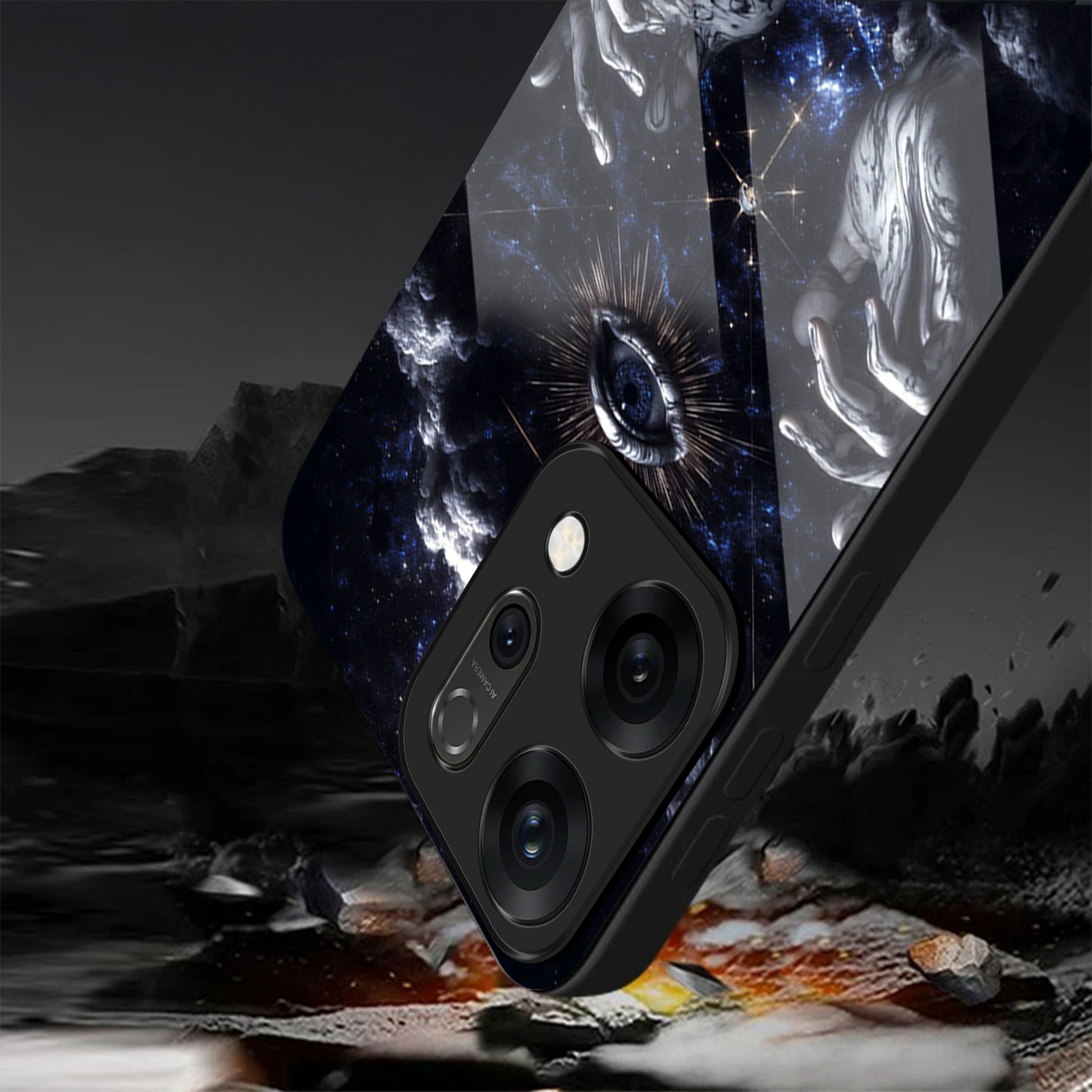 Oppo Reno 14 5G Premium Acrylic Shockproof Glass Back Case (Galaxy Eye)
