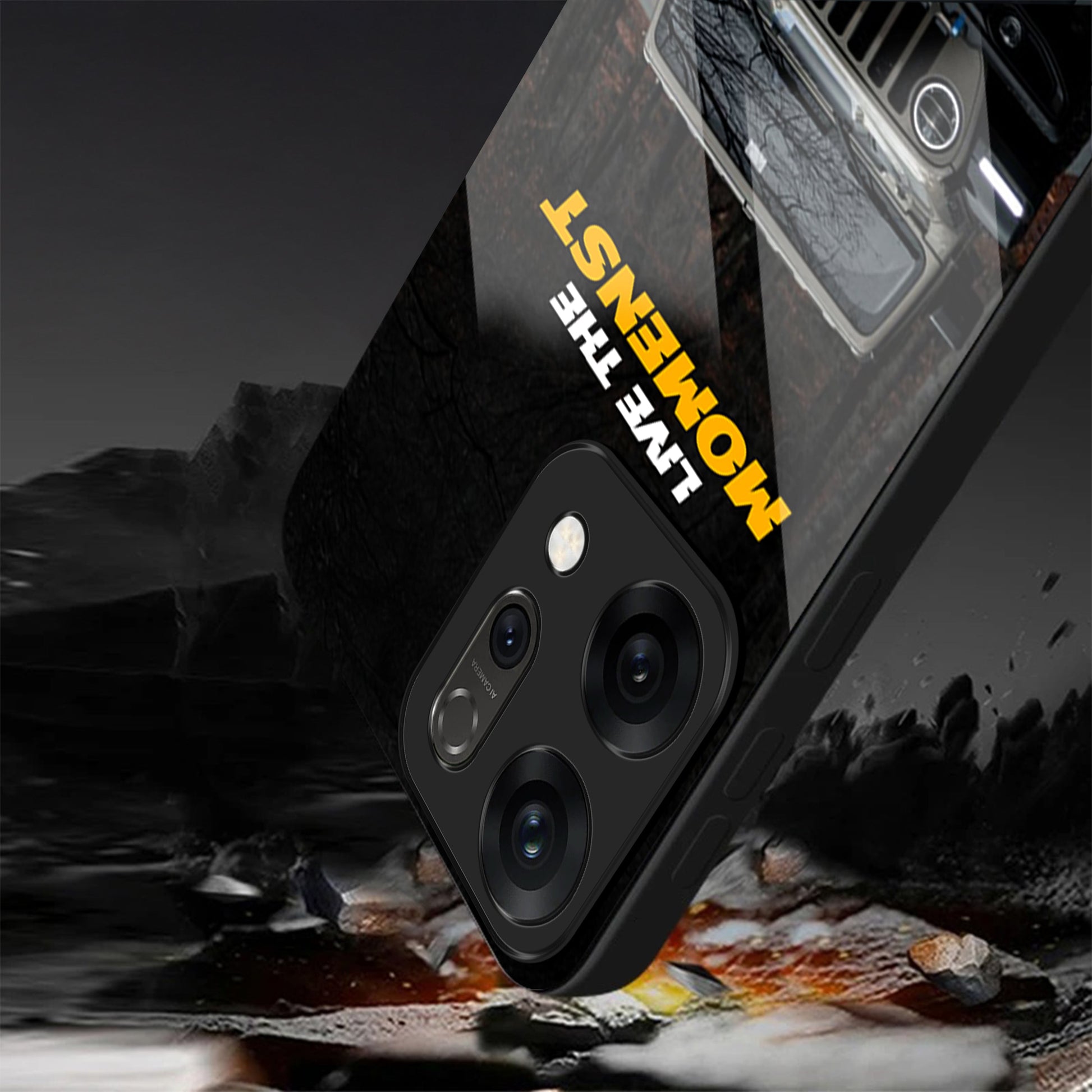 Oppo Reno 14 5G Premium Acrylic Shockproof Glass Back Case (Road Beast)