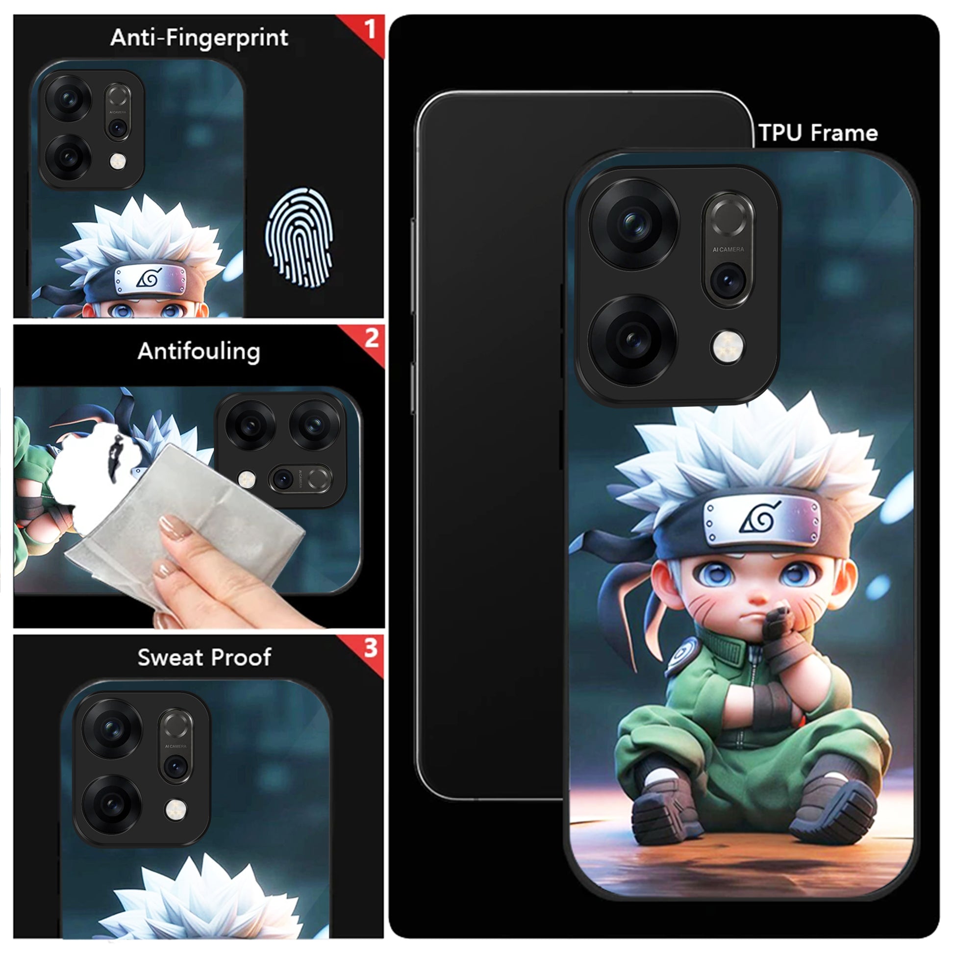Oppo Reno 14 5G Premium Acrylic Shockproof Glass Back Case (Small Kakashi)