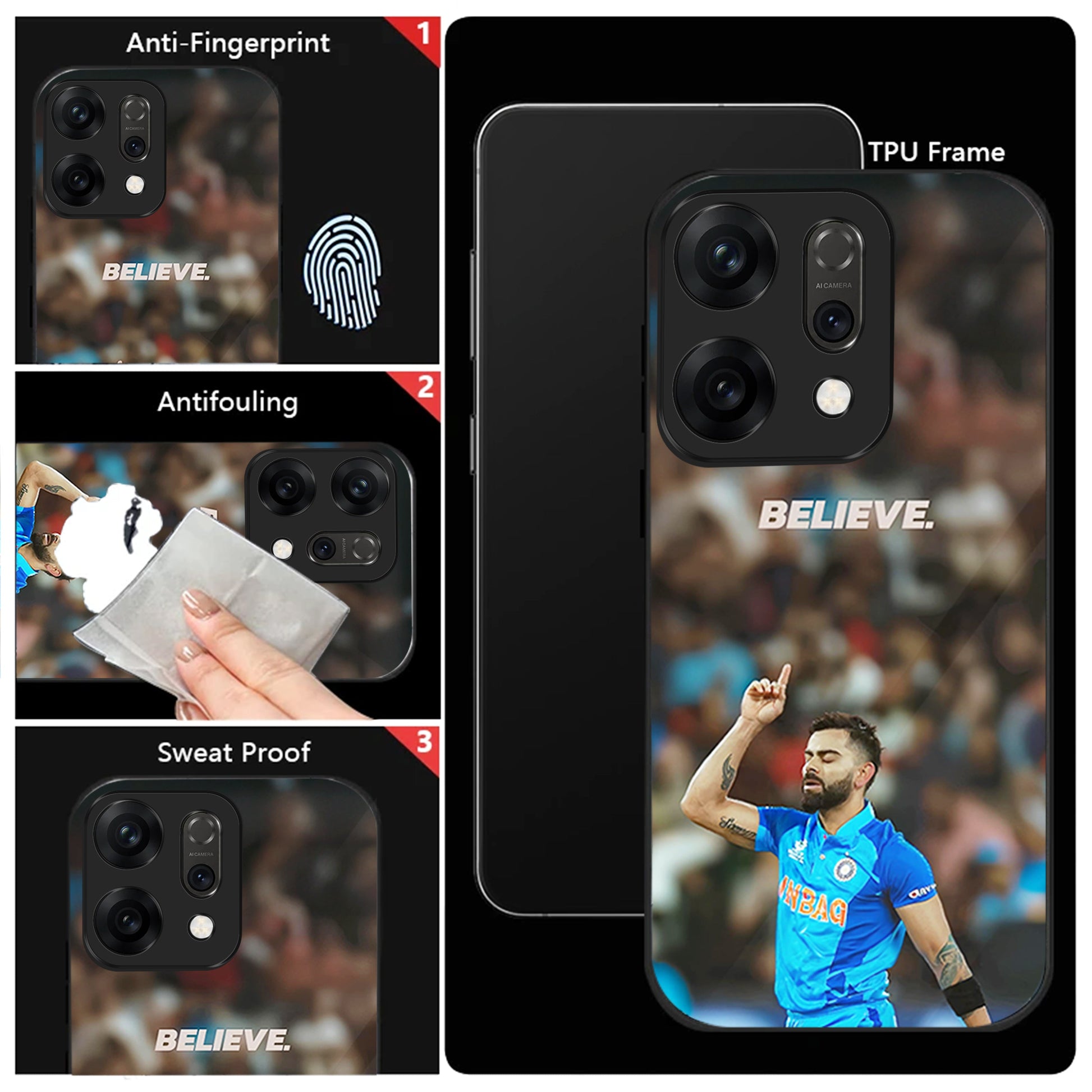 Oppo Reno 14 5G Premium Acrylic Shockproof Glass Back Case (Virat Kohli)