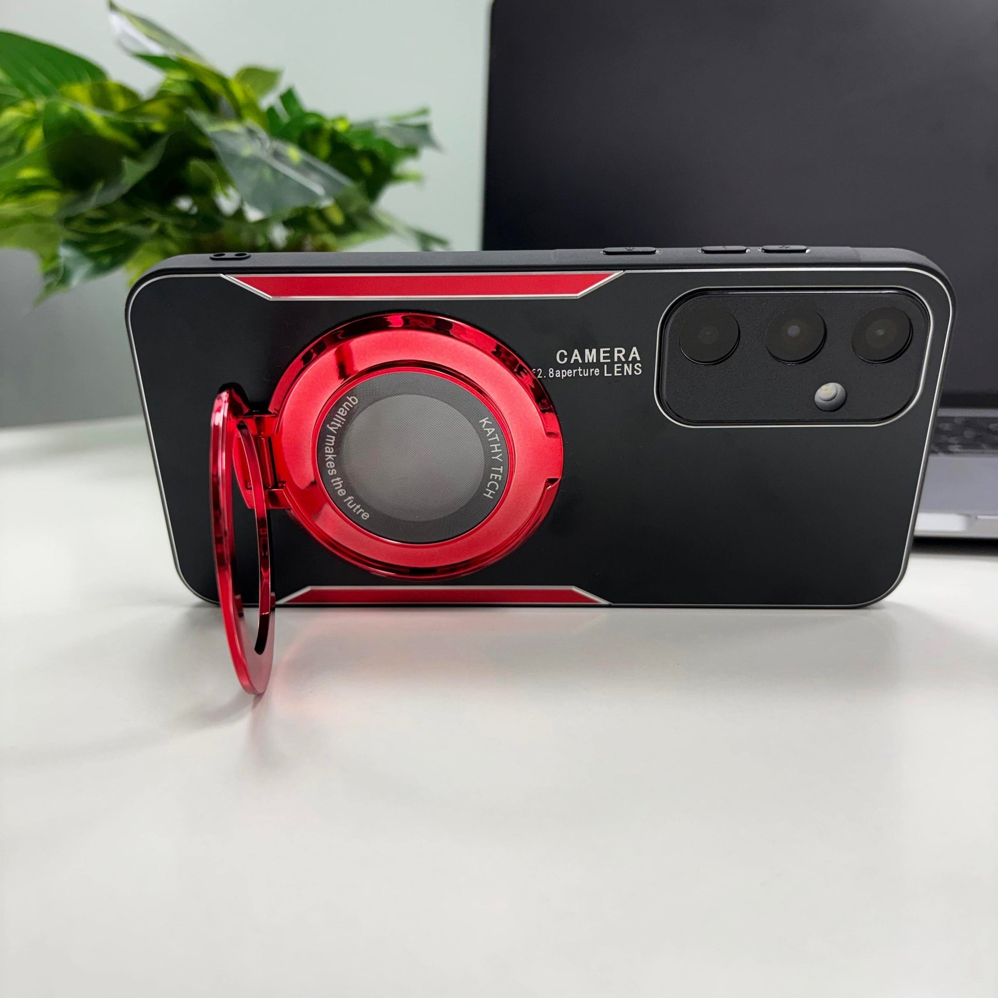 Samsung Galaxy A55 5G Original Luxury Aluminium Metal Magnifier Ring Stand Case